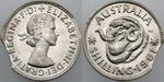 | Description: Shilling. 1958. Curved edge clip 5mm. Some tone with bloom. aUNC |