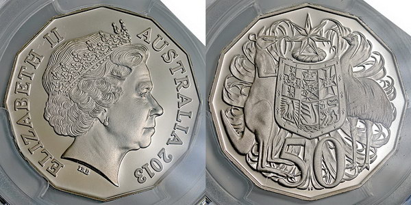 | Description: Fifty Cent. 2013 Proof 50 Cent, standard Reverse. PCGS graded PR 70 DCAM (80298513). The highest possible grade at PCGS. FDC |
