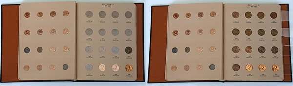 | Description: Sets. 1 and 2 Cent date set, 1966-1991, complete. Many in red, includes a few extras. In Dansco porthole album. (62 coins total). VF-Ch.UNC |