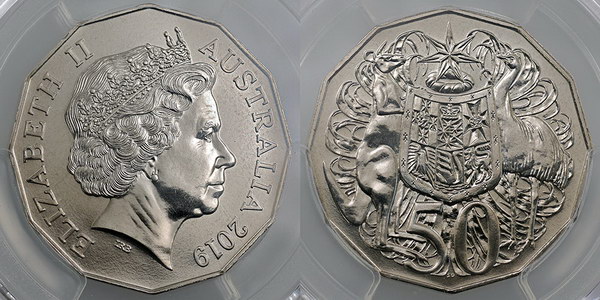 | Description: Fifty Cent. 2019 50th Anniversary Rank Broadley Effigy. PCGS graded MS 68 (42807438). GEM UNC |