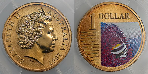 | Description: One Dollar. 2007 Ocean Series: Bannerfish coloured. PCGS graded MS 67 (29403102). GEM UNC |