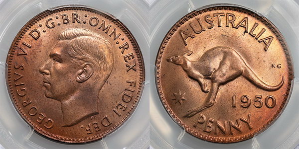 Description: Penny. 1950. PCGS graded MS 65 RB (48467825). Subdued mostly mint red lustre.    GEM UNC