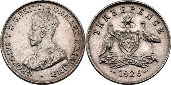 Description: Threepence. 1926. Surface marks.   UNC