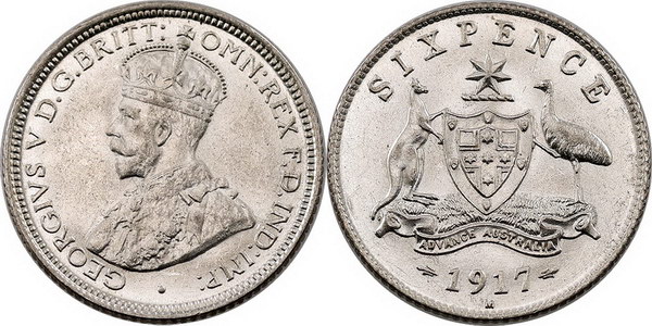 Description: Sixpence. 1917M. Bright bloom.   aUNC