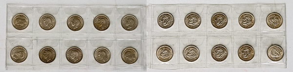 | Description: Sixpence. 1954-1963 collection, complete. Some bloom. (10 coins total). UNC-Ch.UNC |