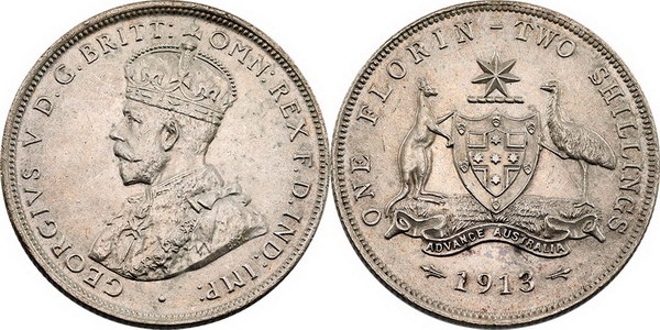 | Description: Florin. 1913. Some light tone. Very scarce this grade. UNC |