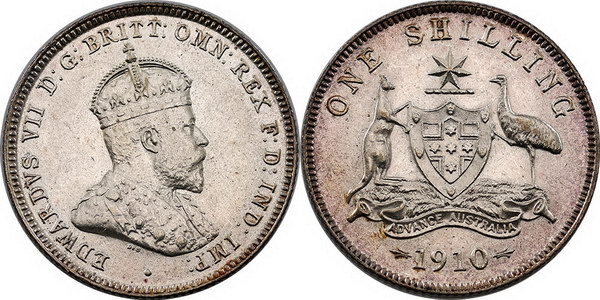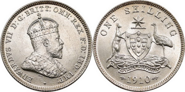| Description: Shilling. 1910. Scratch on kings cheek. UNC |