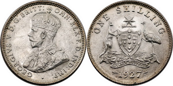 | Description: Shilling. 1920M. PCGS graded MS 63 (27827986). Slight gunmetal toning with bright bloom. Only 9 graded higher. Ch.UNC |