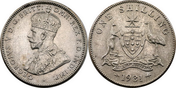 | Description: Shilling. 1931. Some light matte tone, Obverse spot with some hairlines. UNC/Ch.UNC |