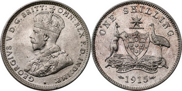 | Description: Shilling. 1914. Light old tone with some underlying bloom. UNC |