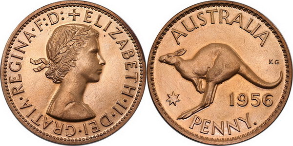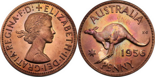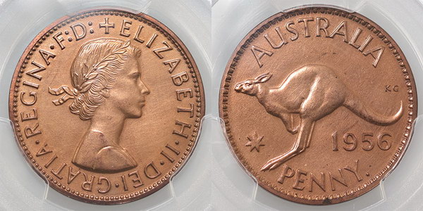 | Description: Penny. 1956 Proof Penny. Red and brown tone. FDC |