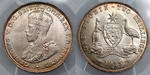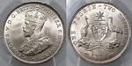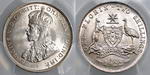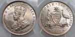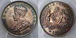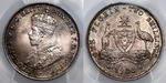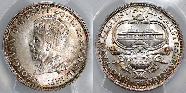 | Description: Florin. 1927 Canberra. PCGS graded MS 65 (47470457). Attractive peripheral old toned with brilliant frosty mint bloom, and full steps. GEM UNC |