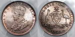 | Description: Florin. 1931. PCGS graded MS 65 (25174221). Light tone with soft mint bloom. Ex The Borg Collection. Only 5 graded higher. GEM UNC |