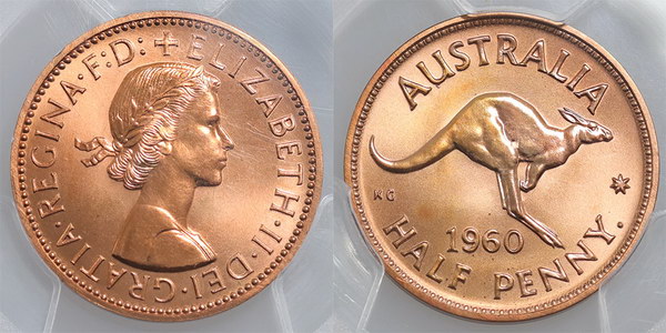 | Description: Halfpenny. 1960Y Proof Halfpenny. PCGS graded PR 66 RD (28025238). Full mint matte red. FDC |