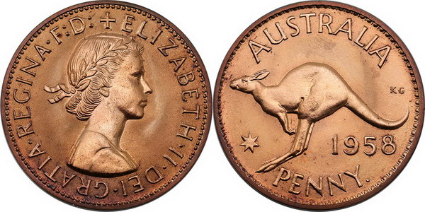 | Description: Penny. 1958Y Proof Penny. Almost full matte mint red. FDC |