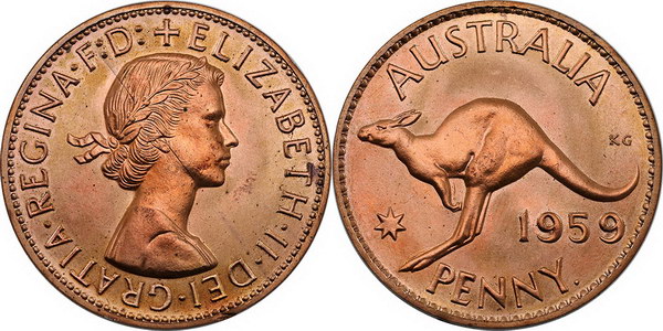 | Description: Penny. 1959Y Proof Penny. Matte mint red. FDC |