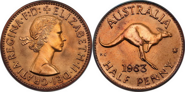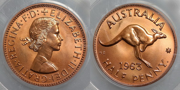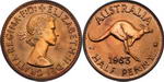 | Description: Halfpenny. 1963Y Proof Halfpenny. Matte mint red and some brown. FDC |