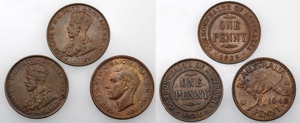 | Description: Penny. 1928 broken 8, 1931 Dropped 1, 1942Y missing I mintmark. (3 coins total). gF-gEF |