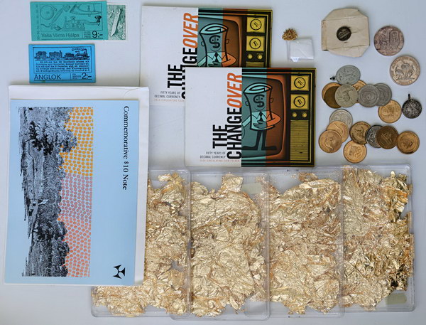 | Description: Small collection of assorted medallions. Includes: Australian Numismatic Society RAM Opening/Decimal Conversion 1965/6 silver (33mm/23g stamped silver 274), First National Convention Sydney 1966 (34mm/30.24g stamped silver 214), Cook Bicentenary Australia 200 Years white metal (21mm), Exhibition Albury NSW 7-9-96 silver cufflink (16mm), Victoria Accession 1837 Centenary? silver medallion with names on back (22mm holed), Anzac Appeal pin and other assorted collector/tourist issues (16). Also 2016 Decimal Currency Mint sets (2; one missing 20 Cent and Dollar, the other missing 20 Cent), gold leaf art packs (4), Netherlands stamps (7) and 1988 polymer 10 Dollar NPA folder (AA 05). (30 items total). VG-UNC |