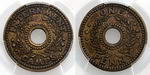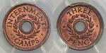 | Description: Threepence Internment Camps copper token WW II. PCGS graded MS 64 RB (25174203). Full red with just a slight hint of tone, only 7 graded higher. Ex The Borg Collection. Ch.UNC/GEM |