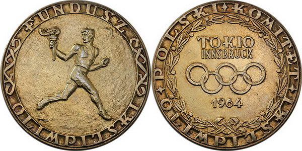 | Description: 1964 Tokyo Olympics silver gilt medal for Polish entrants (70mm). aUNC |