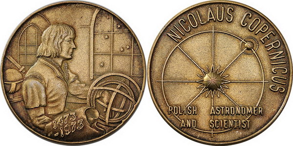 | Description: 1973 Nikolaus Copernicus commemorative gilt silver medallion (48mm). aUNC |