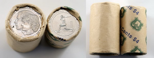 | Description: Fifty Cent. 1981 Charles and Diana plain bank/security roll. Also 20 Cent 2001 Bradman Brambles security roll. (2 items total). UNC |
