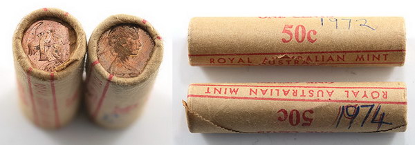 | Description: One Cent. 1972, 1974 RAM mint rolls of 50. End coins toned as usual. (2 rolls total). UNC |
