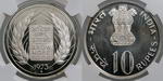 | Description: India silver Proof 10 Rupees 1973B. F.A.O Grow More Food. NGC graded PF 68 Ultra Cameo (6864928-012). Ex Proof set. FDC |