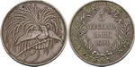 | Description: German New Guinea 5 Mark 1894A. Toned, edge knock and large scrape on Obverse edge with some very slight verdigris tone. Ex Downies Sale 345 Lot 1419. Scarce. VF |