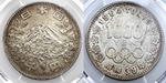 | Description: Japan 1000 Yen 1964 Olympics commemorative issue. PCGS graded MS 65 (88308509). Old toned with lustre. GEM UNC |
