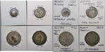 | Description: Ancient Rome Imperial billon silver Gallienus Antoninianus, assorted varieties (258-268AD); Trampling Enemy, Captives (2; one fractured), Virtus Reverses; Salonina (wife of Gallienus) (267-268AD), bust/eagle, Probus (276-282AD) bust/standing facing Jupiter, and Carinus tetradrachm (283-285AD) bust/Elpis. Most toned, some pitted. (8 coins total). G-VG |