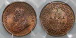 | Description: India (British) Quarter Anna 1934. PCGS graded MS 64 RD (30111674). Brown