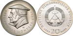 | Description: East Germany DDR silver 20 Mark 1985A, Ernst Moritz Arndt commemorative (0.500, 20.9g). Bright mint lustre. Ch.UNC |
