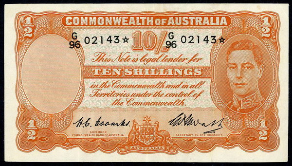 | Lot: 1015 Category: Australian Pre Decimal Starnotes > Ten Shillings |