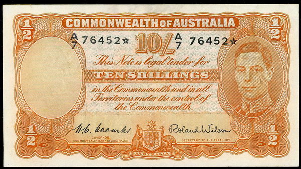 | Lot: 1017 Category: Australian Pre Decimal Starnotes > Ten Shillings |