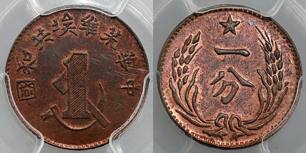 China 1 Cent N/D (c1960). Soviet Republic Fantasy Restrike. PCGS graded MS 64 RB (38243810). Red and brown.