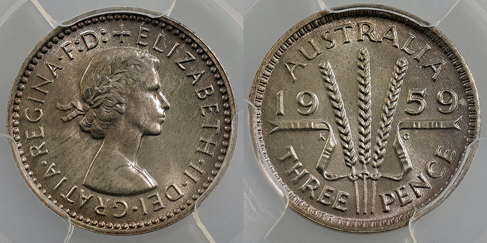 Threepence. 1959 Proof Threepence. PCGS graded...