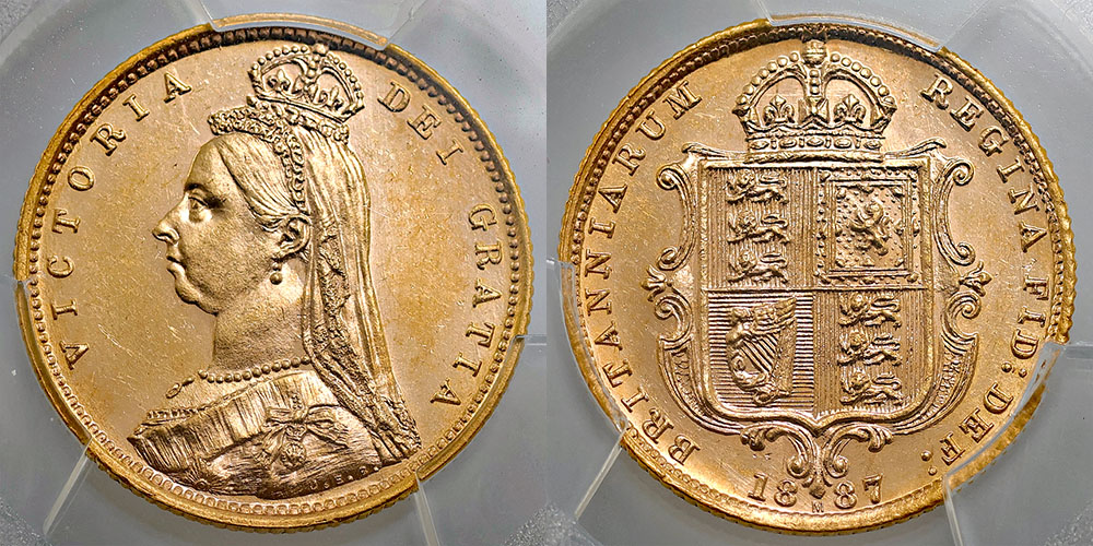 | Description: 1887M Shield Reverse. Victoria Jubilee head. PCGS graded MS 61 (47874771). Spread JEB. Bright mint bloom. Only three graded higher. Scarce. UNC |