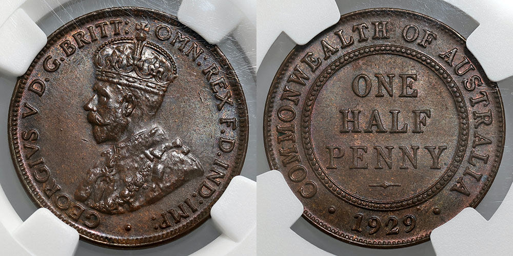 1929. NGC graded MS 64 BN (2831533-007). Brown with some trace red lustre.