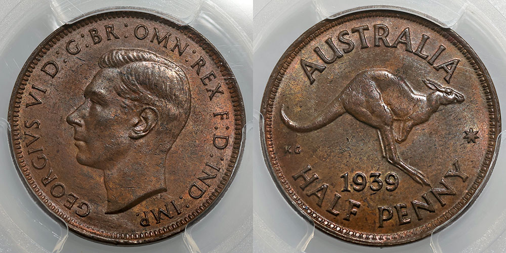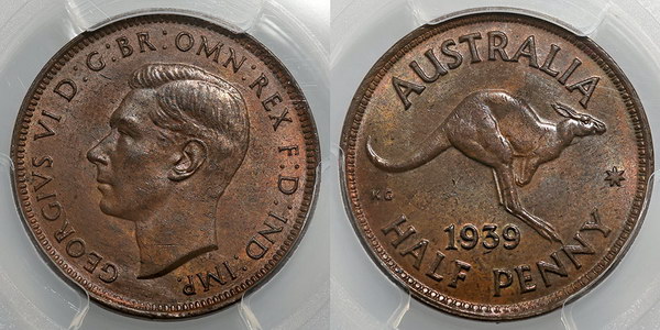 Halfpenny. 1939 Roo. Scarce date. PCGS graded...