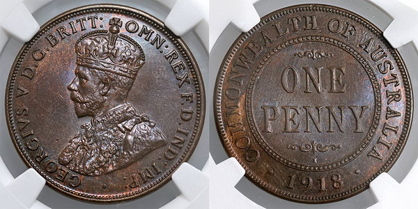 | Description: 1918I. Key date. NGC graded MS 63 BN (8208953-001). Glossy brown with slight trace of red. Ex Fryer collection. Ch.UNC |