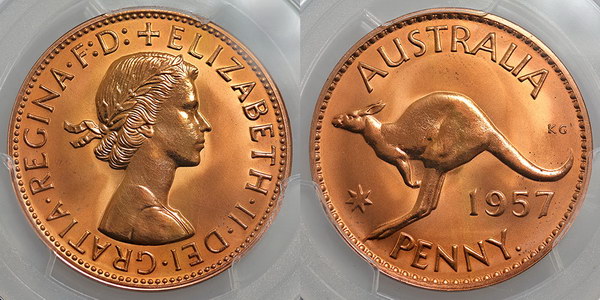 Penny. 1957Y Proof Penny. PCGS graded PR 66 RD...