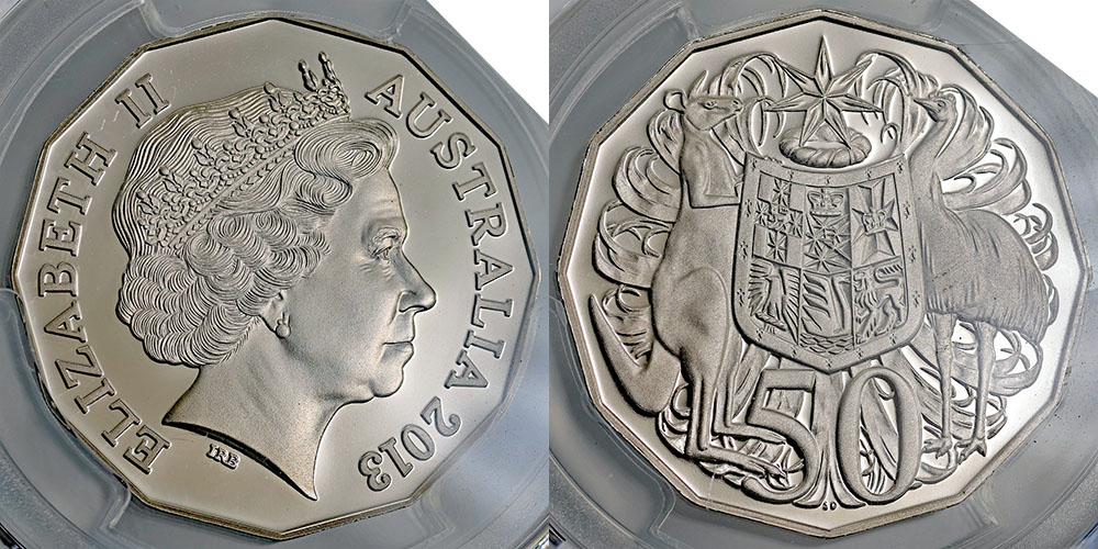 2013 Proof 50 Cent, standard Reverse. PCGS graded PR 70 DCAM (80298513). The highest possible grade at PCGS.