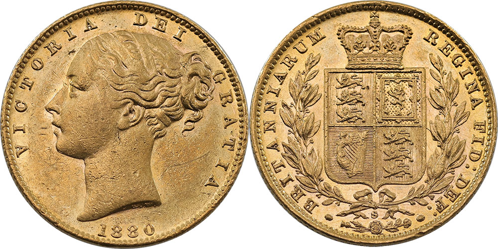 | Description: 1880S Shield Reverse, Inverted A for V in Victoria type. Victoria Young head. Obverse scratches. Rare. aEF |