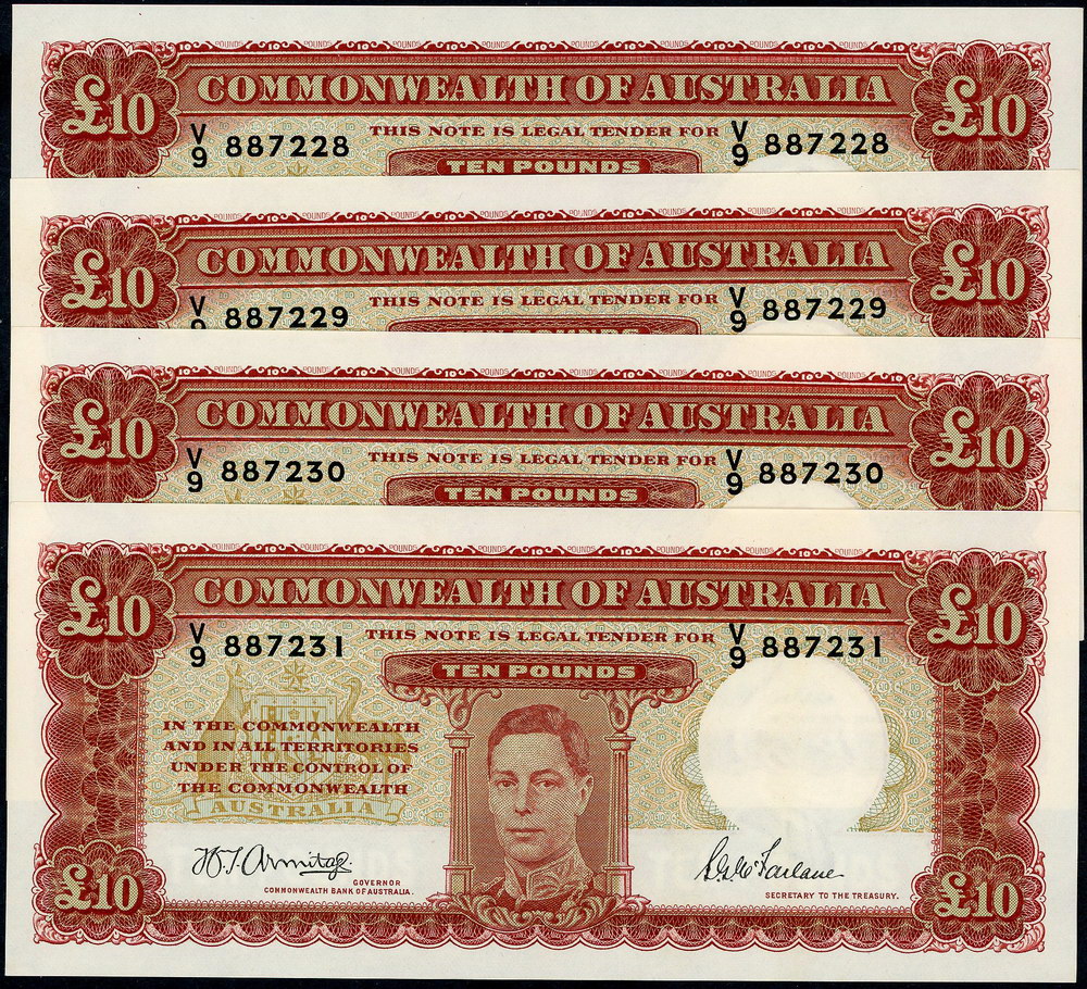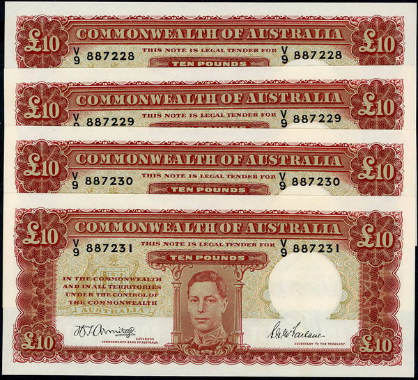 | Lot: 1000 Category: Australian Superior Pre Decimal Banknotes > Ten Pound |
