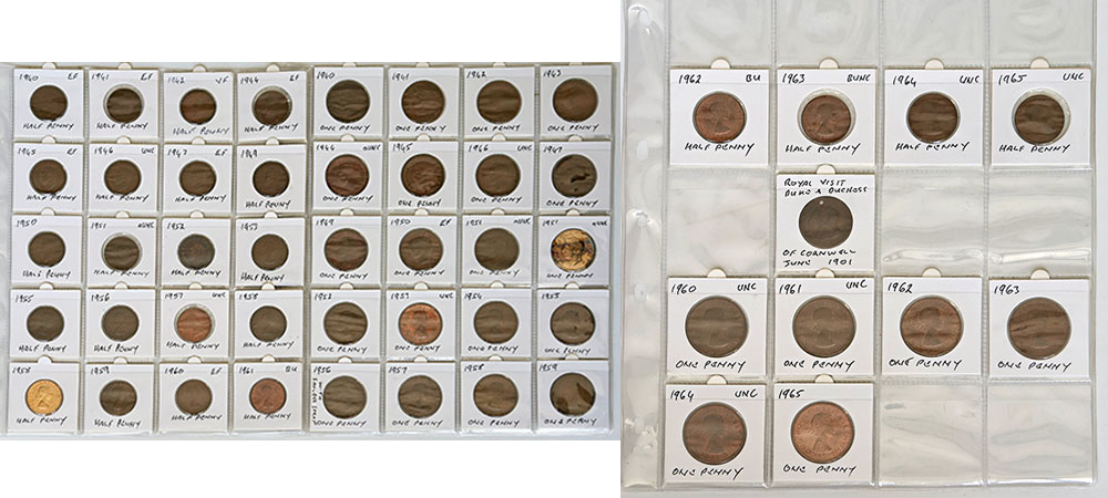 | Description: New Zealand Halfpenny and Penny collection, 1940-1965. Missing 1954 Halfpenny. Mostly brown, a couple cleaned. Also includes Royal Visit medallion 1901 (holed). High catalogue value. (51 coins total). aVF-UNC |