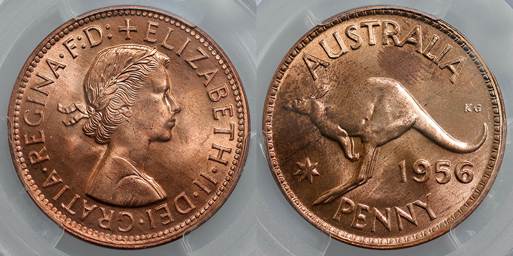 1956. PCGS graded MS 64 RD (30761900). Full bright mint red.