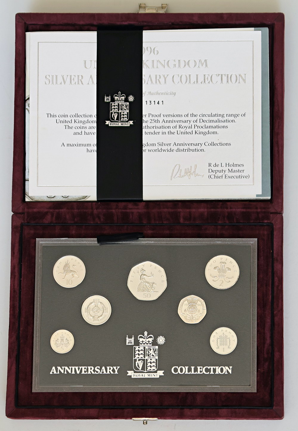 United Kingdom silver Anniversary 7-coin Proof set 1996 (.925/48.43g total). In velour Royal Mint case of issue with COAs.