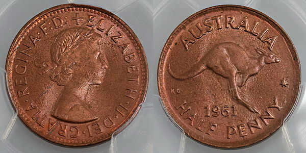 Halfpenny. 1961. Ex mint roll, red to...
